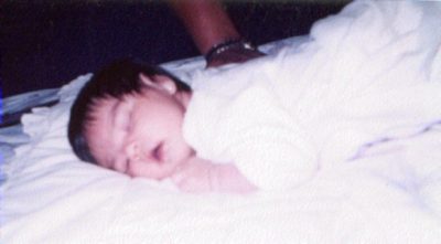 De las manos gorditas que sin parar me agarran, me escalan por mi espalda, me cogen, me rebuscan sin restricciones ni vacilaciones. Del peso que llena mis brazos y dobla mi espalda.